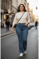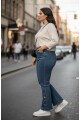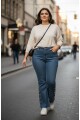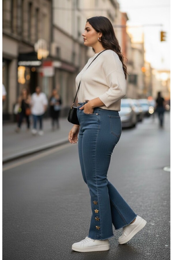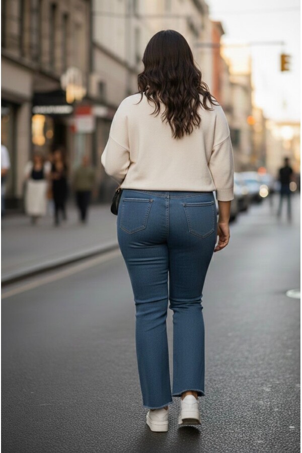 Likralı battal beden bayan jean pantolon; tişört, gömlek veya triko ile rahatlıkla kombinlenebilir. Hem konforu hem de şıklığı bir arada arayan büyük beden kadınlar için ideal bir tercihtir.