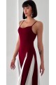 Kadın İnce Askılı Bordo-Beyaz Parçalı