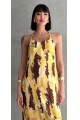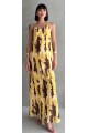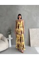 Kadın İnce Askılı Soyut Desen Uzun Elbise