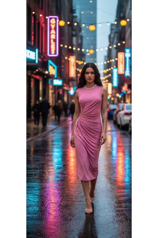 Bu şık önü pileli polyester elbise, modern tasarımı ve göz alıcı pile işlemeleri ile özel davetlerde fark yaratmak isteyen kadınlar için tasarlandı. Yüksek kaliteli polyester kumaşı sayesinde hem hafif hem de dayanıklıdır. Kırışmaya karşı dirençli yapısı, uzun süre formunu korumasını sağlar. Elbise, zarif kesimi ve pileli tasarım süslemeleriyle akşam yemekleri, düğünler, sahne gösterileri veya özel organizasyonlar için idealdir. Geniş renk ve beden seçenekleri ile her zevke ve vücut tipine hitap eder