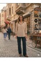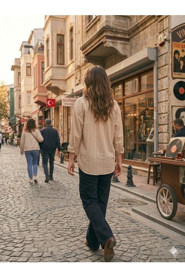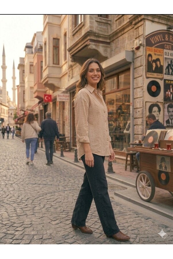 Kadın Taş Rengi Rahat Kesim Keten Gömlek