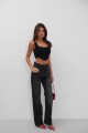 Taşlı Yüksek Bel Straight Fit Düz Paça Antrasit Kadın Kot Pantolon