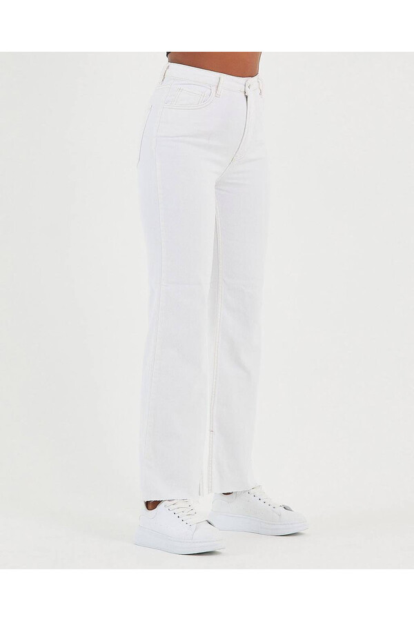 W1541 BEYAZ YÜKSEK BEL DISTRESSED FIT JEAN
