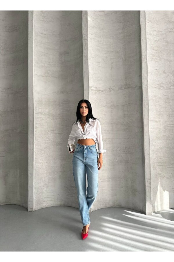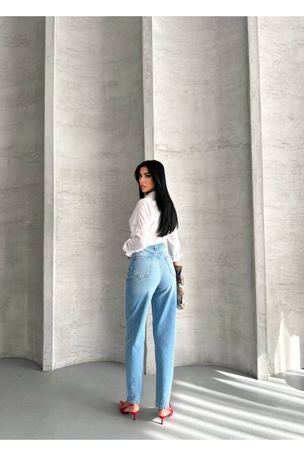 W1599 MAVİ YÜKSEK BEL MOM JEAN