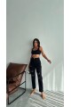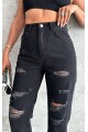 W1599 SİYAH YIRTIKLI YÜKSEK BEL MOM JEAN