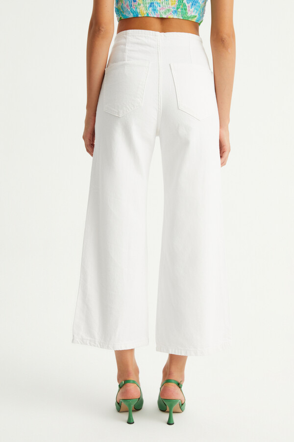 W1616 GOLD DÜĞMELİ BEYAZ KISA PAÇA JEAN