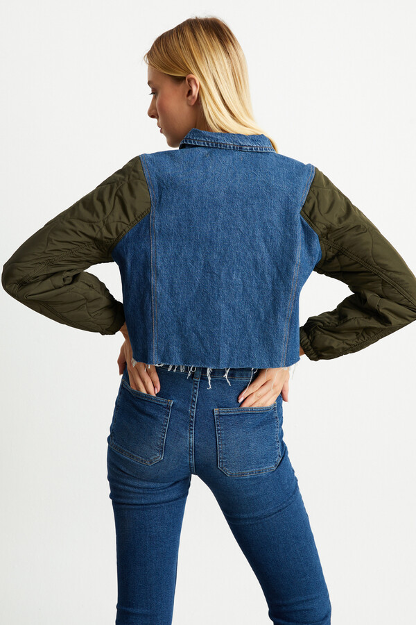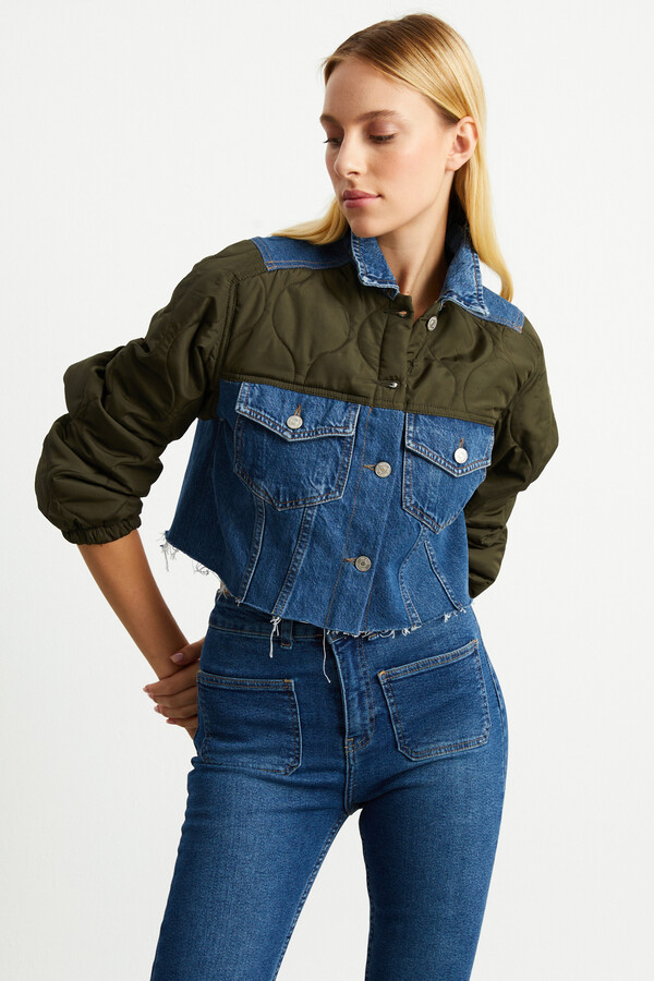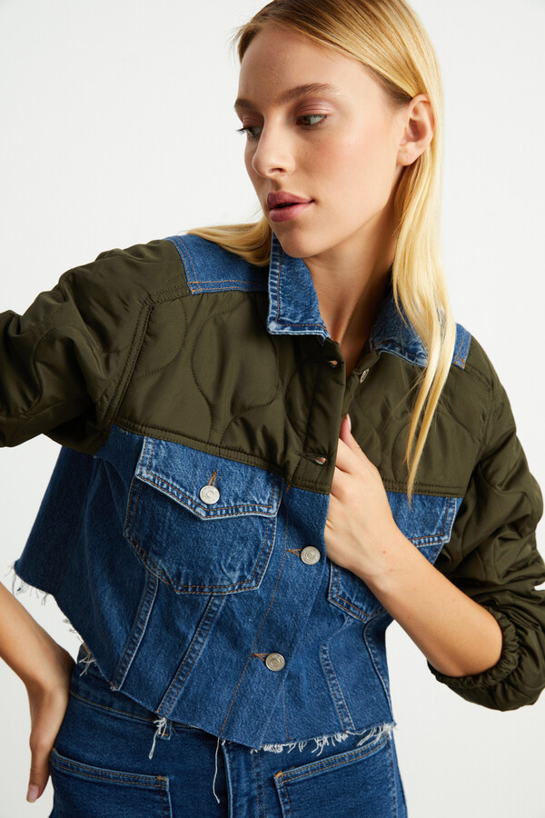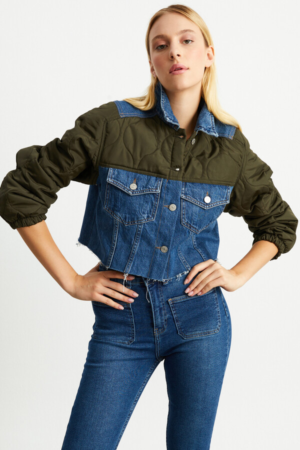 W1650 KHAKI QUILTED SLEEVE DENIM JACKET