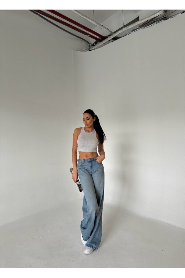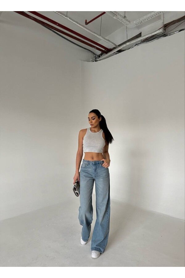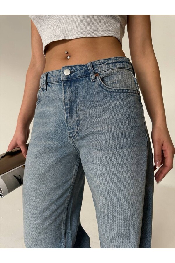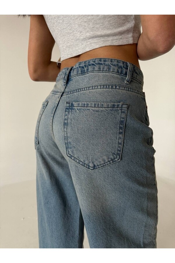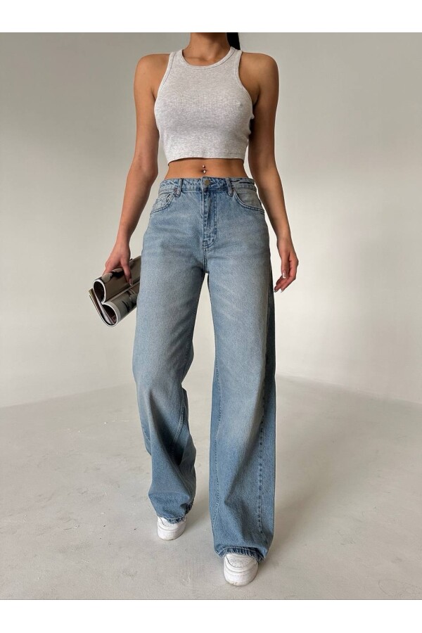W1783 Baggy Palazzo Tintli Orta Mavi Jean