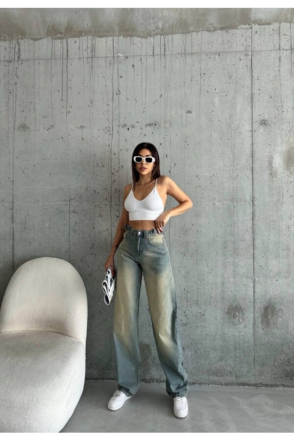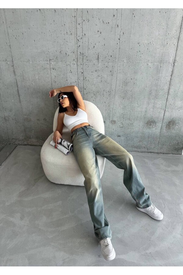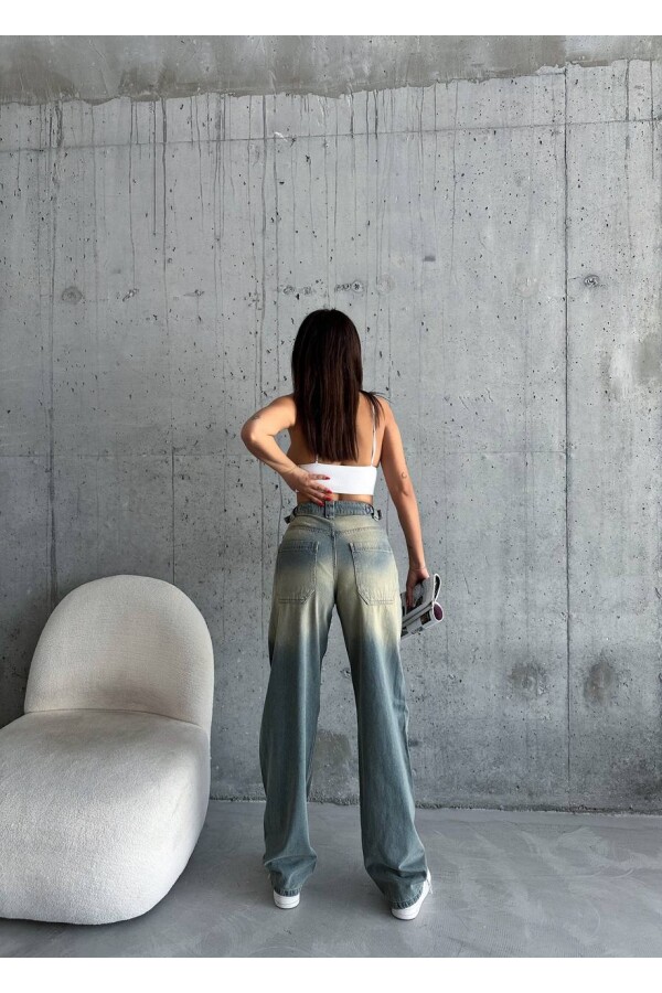 W1849 Beli Kemerli Skater Orta Mavi Jean