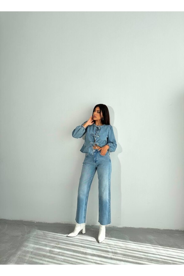 Manken Ölçüleri Boy:1.75 Göğüs:90 Bel: 69 Basen:92 Manken üzerindeki ürün 36 bedendir. KUMAŞ İÇERİĞİ %100 COTTON BAKIM Denim giysilerinizin ömrünü uzatmak için düşük sıcaklıkta ve ters çevirerek yıkayınız. Bu sayede rengini ve kumaşın yapısını korumaya yardımcı olduğumuz gibi enerji tüketimini de azaltırız. Organik kumaşlardan üretilen denimlerimiz gün içinde vücudunuza uygun şekil alarak içinde rahat etmenizi sağlar. Gün boyu giyilen %100 pamuk kumaş içerikli ürünlerde gün sonunda 1-2 cm esneme olağandır. Yıkamanın ardından pamuk kumaş, daha sıkı olan ilk dokusuna geri döner. Bu döngü nefes alan tüm doğal kumaşlarda görülür.