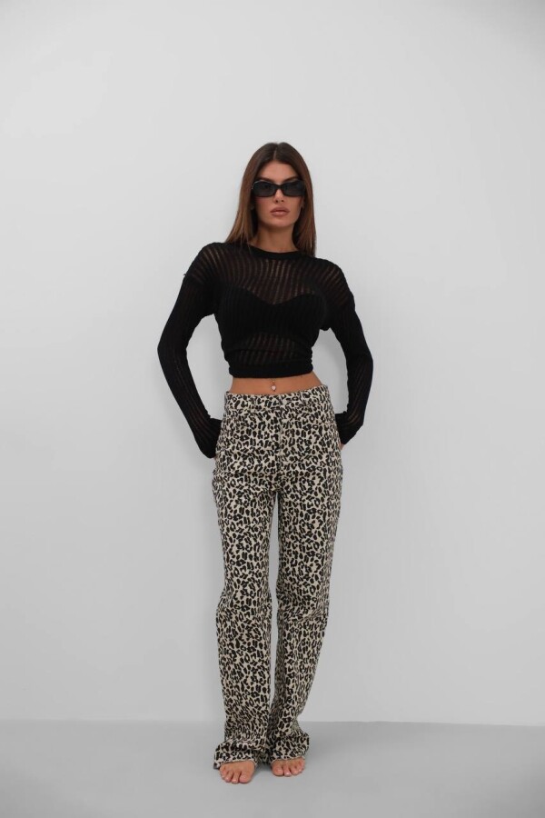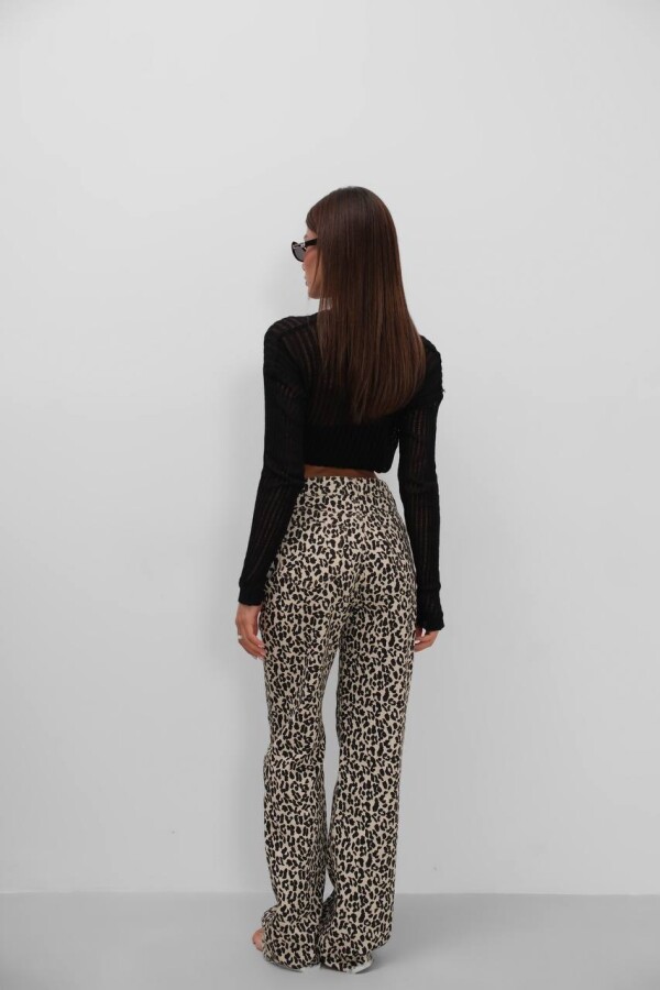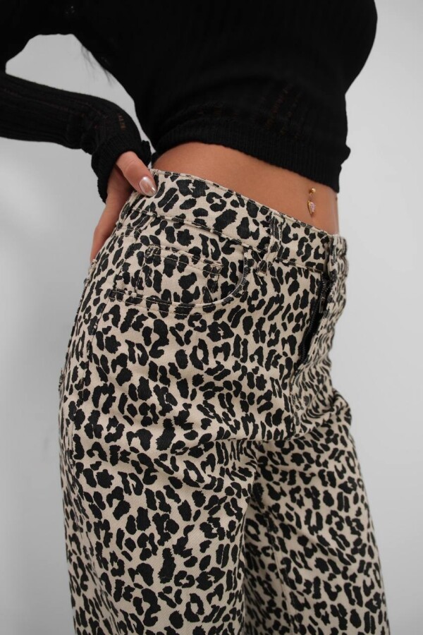 W1983 Bej Leopar Straight Fit Kadın Kot Pantolon