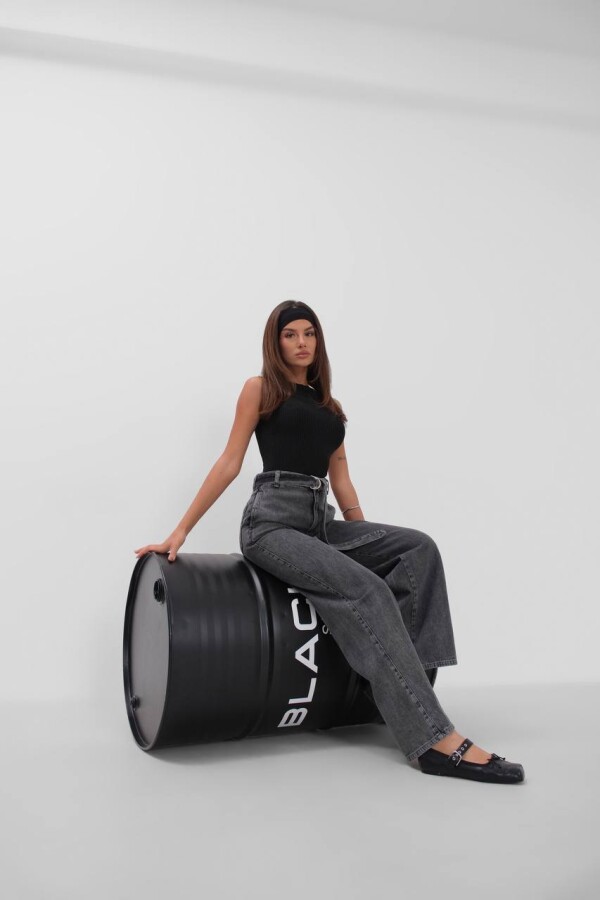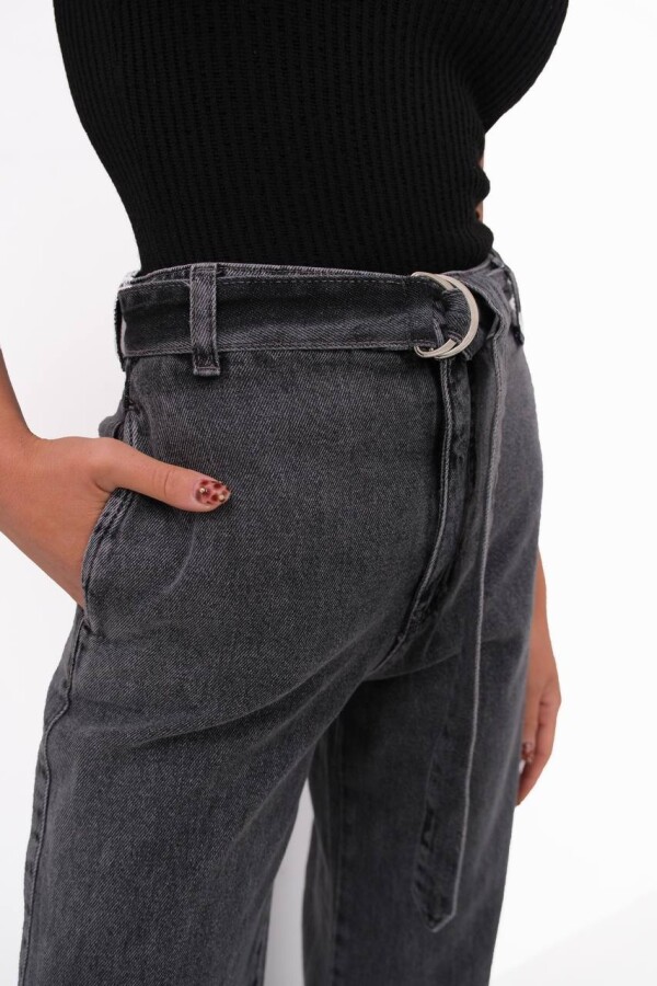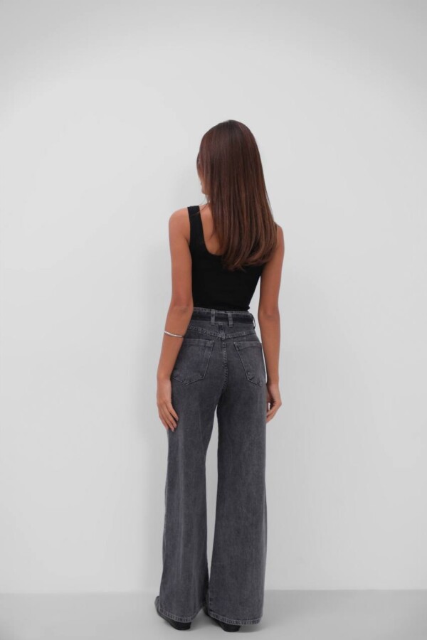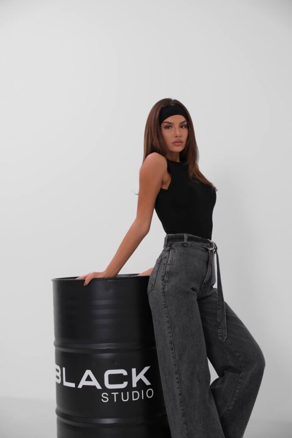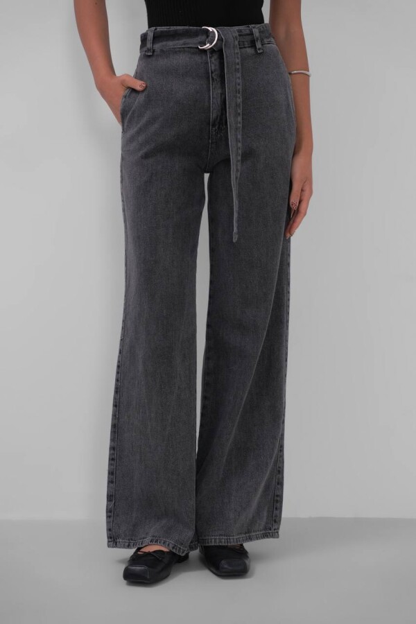 W1991 Beli Kemerli Gri Palazzo Wide Leg Kot Pantolon
