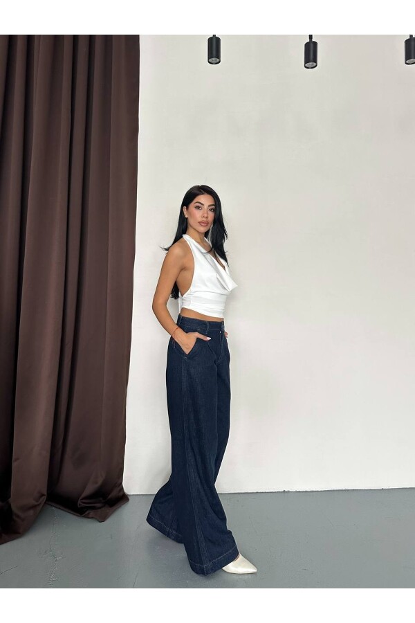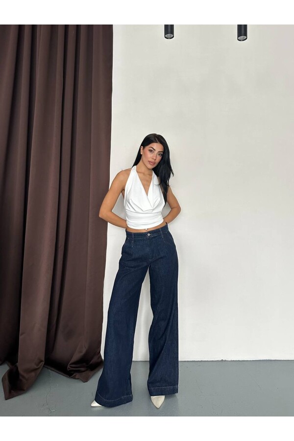 Yeni Sezon Bol Paça Lacivert Kadın Kot Pantolon